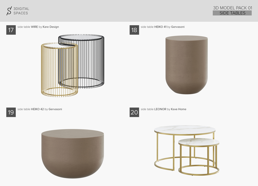 3Digital Spaces Model Pack 01 - Side Tables